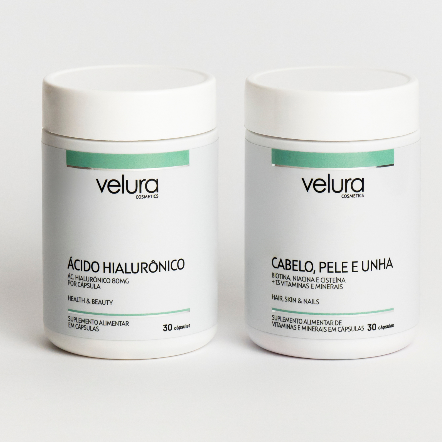 Velura Duo Beauty – Kit com 60 Cápsulas (30+30): Ácido Hialurônico, Biotina, Niacina e Cisteína + 13 Vitaminas e Minerais para Cabelo, Pele e Unhas.